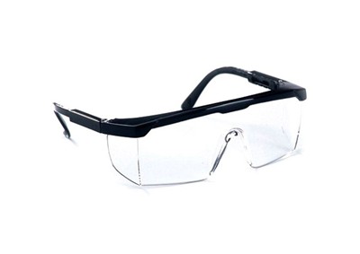 Lente e proteção lateral confeccionada em uma única peça, resistente a impactos, armação e hastes em nylon com regulagem no comprimento, leve e confortável, lentes acopladas através de encaixe.