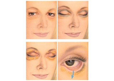 Se existem bolsas de gordura na pálpebra inferior sem excesso de pele, uma incisão na parte interna da pálpebra pode ser realizada promovendo uma cicatriz não aparente.
