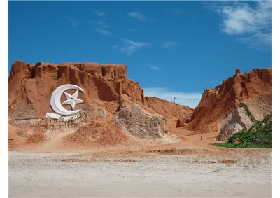 Canoa Quebrada As falésias coloridas bordadas com a lua e estrela, símbolos da praia de Canoa Quebrada,a água esverdeada e a visão mágica do pôr-do-sol visto das dunas transformaram esta região em ícone da beleza litorânea cearense.