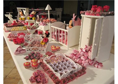 MESA DE CHOCOLATES PERSONALIZADOS DA MINIE ROSA.